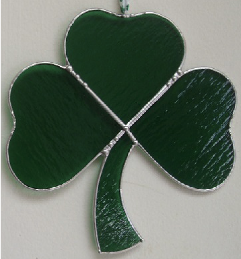 Come learn to make a beautiful stained glass shamrock using the copper foil technique. You will learn about art glass and choose your own glass for this project. You will learn to cut, grind, foil, and solder the glass. Cleaning and sanding of student pieces will be done in class. Students will leave this one-day workshop with a completed project in hand. (a more detailed pattern will be available for folks who have some experience)