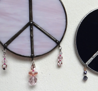 Come make a 6″ Peace Sign suncatcher! Learn to make beautiful Stained Glass using the copper foil technique, Tiffany Style! You will choose your own glass. You will cut, grind, foil and solder the glass. Cleaning and sanding of your projects will be done in class, and you will leave this one-day workshop with a completed project in hand.